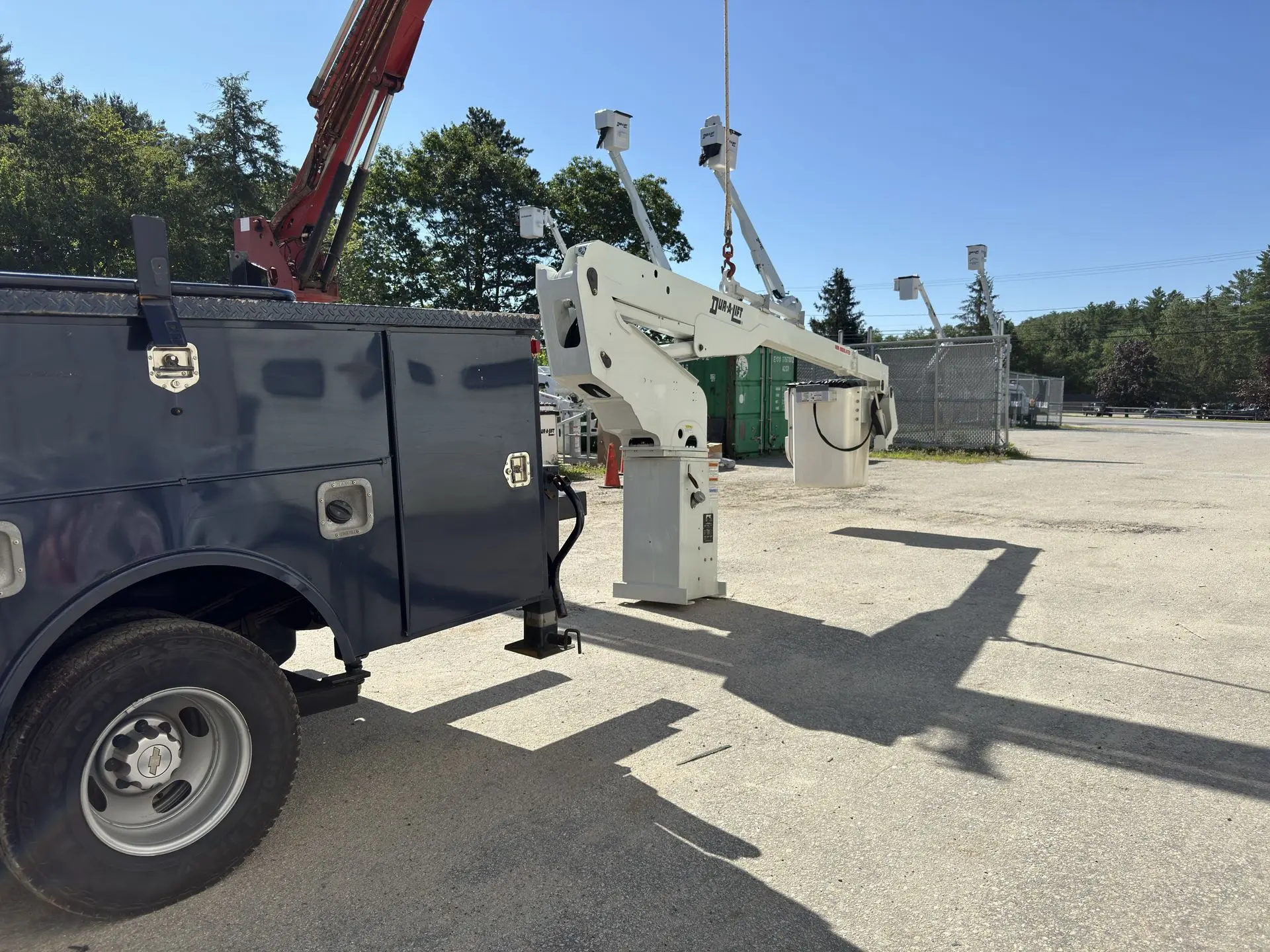 Since 1994 RBG Inc. has built all sorts of different custom bucket trucks, diggers, fiber optic splicers, and more. In addition to build a new unit, our fabrication team takes enjoyment in refitting an older chassis with a new lift. The Highway Department in Killingly put their trust in us to take their well-maintained 2005 Chevy 3500 with an existing Stellar crane, and install a Dur-A-Lift DT-29TS. Our head fabricator took this job on, and installed a new subframe, some supports, and a new tail shelf.